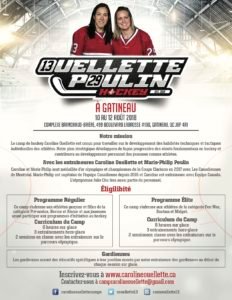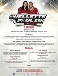 Olympians Caroline Ouellette and Marie-Philip Poulin have built the on-ice curriculum designed to develop the athlete’s individual technical and tactical skills. Players will be offered two different programs based on their ability level: A Regular Program and an Elite Program.