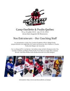Une semaine avant le début du camp Ouellette & Poulin à Québec. Le camp est offert aux athlètes de 5 à 17 ans du 19 au 22 juillet.