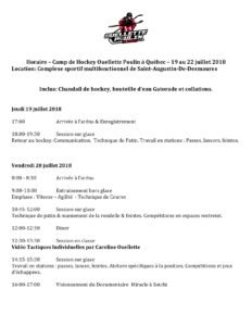 One week left before the start of the Ouellette & Poulin Hockey Camp in Quebec from July 19 to 22. For athletes aged 5 to 17.